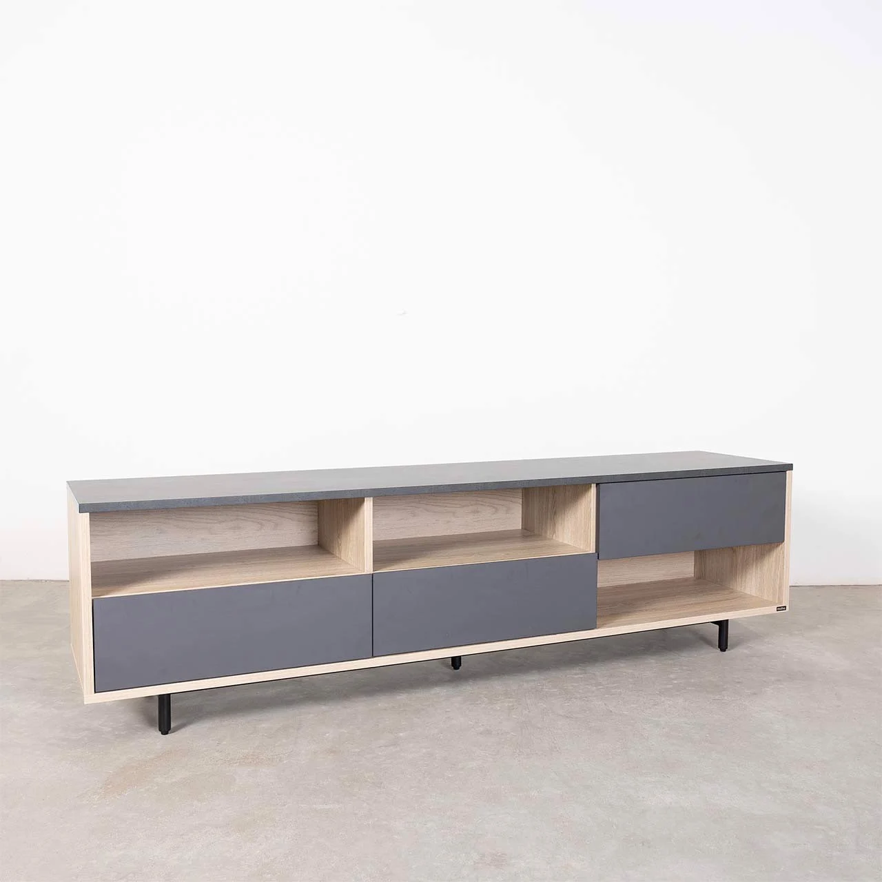 Mặt trên của tủ kệ tivi được làm từ gỗ PB phủ Melamin hiệu ứng giả vân tường xi măng sống động như tường thật, đem lại cảm giác sang trọng cho phòng khách của bạn.